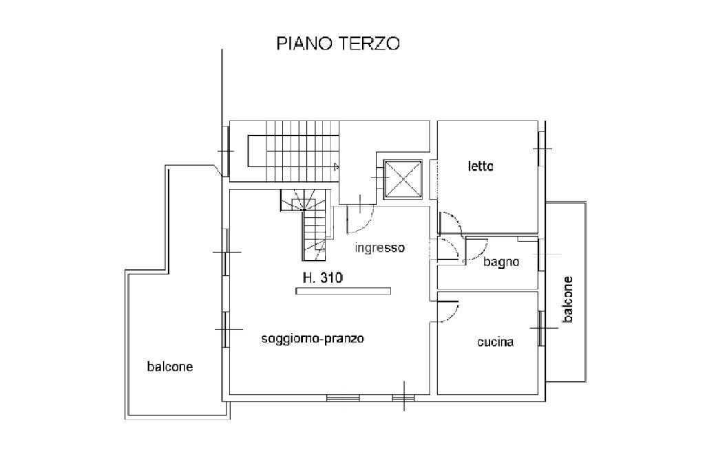 Al terzo piano si accede all'elegante zona giorno, composta da un ampio soggiorno doppio che si apre su un terrazzo esposto a est, perfetto per momenti di relax all'aperto. La cucina abitabile, di forma regolare e facilmente arredabile, dispone anch'essa di un balcone dedicato. Completano il piano una prima camera da letto e un bagno finestrato.